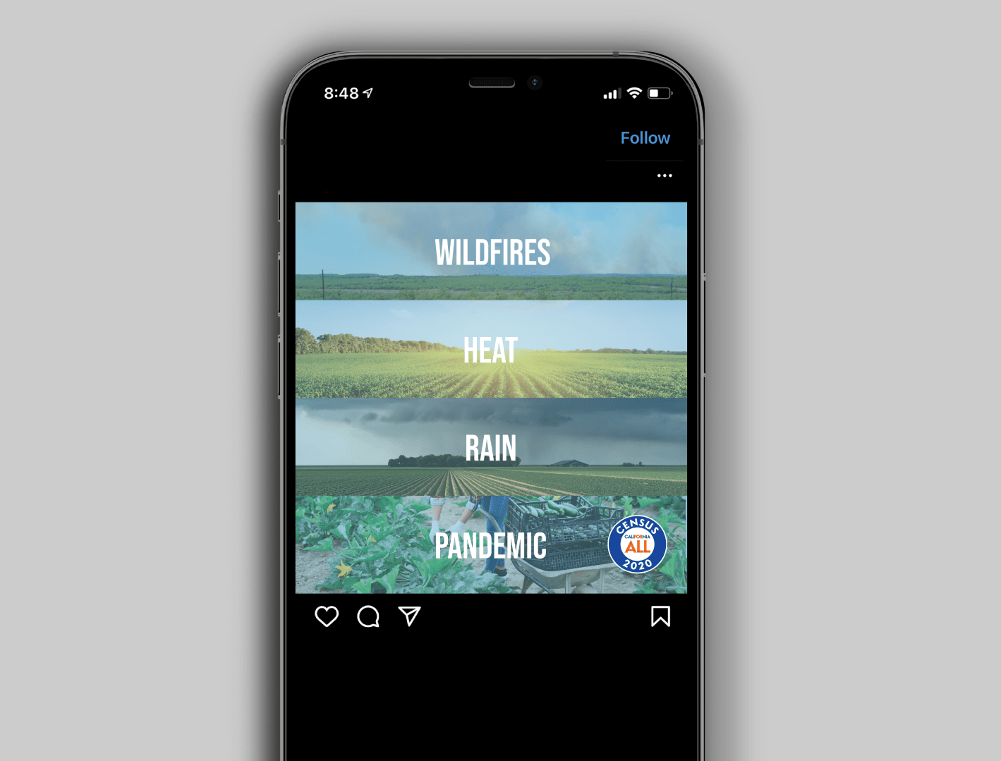 The 2020 California Census campaign was a statewide effort to encourage households to participate in the 2020 Census. We lead creative and paid media strategy by developing digital and print OOH advertisements, social media graphics, and implementing guerrilla marketing tactics. The target audience were residents in specific areas of California, both metropolitan cities and rural areas, that had lower census rates - communities that have often been undercounted in the past.